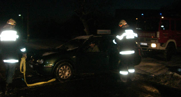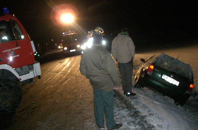 Nur rund 50 Meter vom Rüsthaus der Feuerwehr Gussendorf entfernt, rutschte am Morgen des 16. Februar 2012 ein PKW von der schneeglatten Fahrbahn