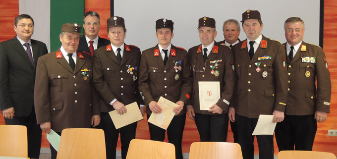 Danach nahmen die Ehrengäste die Überreichung von Auszeichnungen an verdiente Kameraden vor. So erhielten HBI Franz Hutter und OBI Franz Heinzl das Verdienstkreuz in Bronze des Bereichsfeuerwehrverbandes Deutschlandsberg, HFM Markus Hetzl und HFM Norbert Safran das Verdienstzeichen dritter Stufe des Landesfeuerwehrverbandes. HFM Norbert Gotthard erhielt die Medaille für 60-jährige verdienstvolle Tätigkeit auf dem Gebiete des Feuerwehr- und Rettungswesens. Auch aus diesem Anlass war der Bezirkshauptmann in Vertretung von Landeshauptmann Franz Voves zur Jahreshauptversammlung gekommen. Bereits im Vorfeld der Sitzung wurde an HFM Anton Sackl die Medaille für 70-jährige verdienstvolle Tätigkeit verliehen. Zwei Kameraden, die mit ihrer langjährigen Arbeit und Treue ein Vorbild für die Jugend darstellen.
