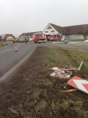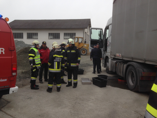 Gestern wurde die Feuerwehr Gussendorf um 11:13 Uhr zu einem LKW-Unfall im Ortsgebiet alarmiert. Ein Sattelschlepper war beinahe von der Straße abgekommen und hat dadurch ein Leck im Dieseltank verursacht. Die FF Gussendorf war mit 10 Mann rund vier Stunden im Einsatz um den ausgeflossenen Diesel gemeinsam mit der nachalarmierten FF Deutschlandsberg fachgerecht zu entsorgen. Auch der Chemiealarmdienst des Landes, die Straßenverwaltung und die Polizeit waren an der Unfallstelle im Einsatz.