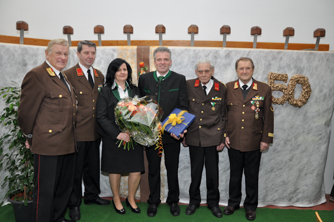 Am vergangenen Freitag (30. Jänner 2015) gab es in Gussendorf einen besonderen Grund zu feiern. Der Feuerwehrkommandant der Freiwilligen Feuerwehr Gussendorf feierte die Vollendung seines fünften Lebensjahrzehntes. Der Jubilar hat keine Kosten und Mühen gescheut und fast ganz Gussendorf eingeladen. Neben allen Feuerwehrkameraden mit ihren Partnerinnen waren auch die große Familie, Arbeitskollegen und Freunde des Geburtstagskindes zum Fest gekommen. Die Feuerwehrhalle des Rüsthauses wurde dafür in einen wunderschönen Saal umgewandelt. Zahlreiche Helfer haben im Vorfeld unter der Regie von Gattin Hermine Hutter für einen festlichen Rahmen gesorgt. Wie in Gussendorf üblich wurde der Jubilar mit dem Feuerwehrfahrzeug von dessen Heimathaus abgeholt um dann mit eingeschaltetem Blaulicht und Folgetonhorn am Vorplatz des Rüsthauses vorzufahren. Im Rüsthaus ließ OBI Franz Heinzl, der zugleich der Schwager des Jubilars ist, 58 Mann der Ortsfeuerwehr, antreten. Unter den Klängen der Marktmusikkapelle wurden HBI Franz Hutter und seine Gattin im Feuerwehrsaal von rund 150 eingeladenen Personen feierlich empfangen. Den Auftakt der Worte zur Gratulation machte OBI Franz Heinzl. Um bei den Ausführungen nicht zu lang zu werden, verpackte der Kommandant-Stellvertreter die Höhepunkte des Schaffens des Kommandanten für die Feuerwehr in seine Rede. 35 Jahre ist der Ortsfeuerwehrkommandant bereits der Feuerwehr verbunden. Von 2002 bis 2004 war Hutter Kommandant-Stellvertreter und seit 2004 steht er der FF Gussendorf als Kommandant vor. In dieser Zeit konnte er in der feuerwehrinternen Statistik der Tätigkeiten immer den Platz eins für sich beanspruchen und dies mit teilweise sogar 100 Prozent der Teilnahmen untermauern. „Zudem bist du Bewerter des Landesfeuerwehrverbandes und trägst unseren Namen weit über die Grenzen hinaus“, sagte OBI Franz Heinzl. Für seine Verdienste wurde der Jubilar mit zahlreichen Auszeichnungen geehrt. Unter anderem darin enthalten sind die Bewerter-Spange in Gold, das Verdienstzeichen des Bereichsfeuerwehrverbandes Deutschlandsberg in Bronze oder das Verdienstzeichen des Landesfeuerwehrverbandes erster Stufe. 15 Feuerwehrkurse hat der Kommandant in seiner Feuerwehrlaufbahn bereits absolviert und 13 Leistungsabzeichen, darunter die „Feuerwehrmatura“, das FLA in Gold, errungen. Ein übliches Feuerwehrgeschenk und ein Präsent für den Weitblick des Jubilars wurden vom Kommandant-Stellvertreter überreicht. Der Gattin wurde in Form eines Blumenstraußes gedankt. Auch die Partnerinnen der Feuerwehrmänner stellten sich mit einem Geschenk ein. Nach den Ausführungen von EABI Eduard Pirker dankte sein Firmenchef Klaus Puntigam dem Jubilar in lustiger Art und Weise für seine vielseitige Einsetzbarkeit. Nach den Gratulationen seiner Familie und nach Überreichung aller Geschenke sowie einem Umtrunk gab es, bevor es in den festlich gedeckten Saal ging, ein wunderschönes Feuerwerk zu bestaunen. Im Festsaal gab es die dritte der drei Überraschungen für den Jubilar. Zwei Musikanten aus der Oststeiermark sorgten mit teils kabarettreifen Musikstücken für Erheiterung unter den Festgästen in Gussendorf. Bei ausgezeichneter Bewirtung und hervorragender Verköstigung wurde noch bis in die frühen Morgenstunden auf den Jubilar angestoßen.