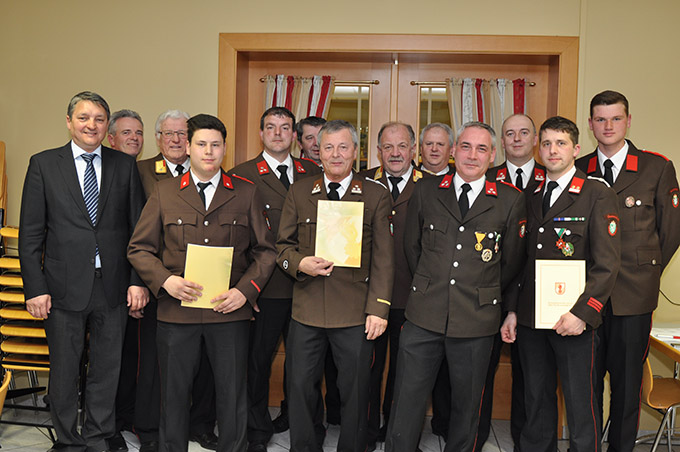 Am vergangenen Samstag (11. März 2017) lud die Freiwillige Feuerwehr Gussendorf wieder zu ihrer alljährlichen Wehrversammlung ins Rüsthaus ein. HBI Franz Hutter konnte neben 47 Kameraden der Wehr auch zahlreiche Ehrengäste, darunter Bürgermeister Alois Resch, Oberbrandrat Helmut Lanz, Abschnittsbrandinspektor Anton Primus sowie Polizei- Kontrollinspektor Franz Krainer begrüßen. OBI Franz Heinzl ließ in einem eindrucksvollen Tätigkeitsbericht das vergangene Feuerwehrjahr Revue passieren. Alle Tätigkeiten zusammengerechnet ergaben 6046 Stunden, die für die Öffentlichkeit freiwillig von den Feuerwehrmännern im Jahr 2016 geleistet wurden. Nach den Tätigkeitsberichten der Ämterführer standen Ehrungen, Beförderungen und Verleihungen am Programm. JFM Patrick Bobek wurde angelobt und ist nun aktives Mitglied der Feuerwehr. FM Lukas Lipp wurde zum Oberfeuerwehrmann befördert. HLM d.F. Josef Lipp, der nach über 35 Jahren das Amt des Atemschutzwarts in jüngere Hände übergab, erhielt neben einem Erinnerungsgeschenk das Verdienstzeichen zweiter Stufe des Landesfeuerwehrverbandes. HFM Karl Heinz Wieser erhielt das Verdienstzeichen dritter Stufe des Landesfeuerwehrverbandes. HLM Eduard Suppan und OLM Robert Heinzl erhielten das Verdienstzeichen des Bereichsfeuerwehrverbandes in Bronze verliehen. Für 25-jährige verdienstvolle Tätigkeit auf dem Gebiete des Feuerwehr- und Rettungswesens wurde HFM Johann Stoiser geehrt. Nach dem Bericht des Kommandanten, der auch einen Ausblick auf das 40. Jubiläums-Pfingstzeltfest im Juni gab, standen die Neuwahlen am Programm. Mit überwältigender Mehrheit wurden Kommandant Franz Hutter in seinem Amt bestätigt und LM d.F. Markus Hetzl zum neuen Kommandant-Stellvertreter der Feuerwehr Gussendorf gewählt. Der scheidende OBI Franz Heinzl, der sein Amt nach 13 Jahren sichtlich bewegt in jüngere Hände übergab, wird der Feuerwehr aber weiterhin aktiv erhalten bleiben. Auch ihm wurde als Dank ein Erinnerungsgeschenk überreicht. Nach den Grußworten der Ehrengäste fand die Versammlung bei einem hervorragenden Essen einen gemütlichen Ausklang.